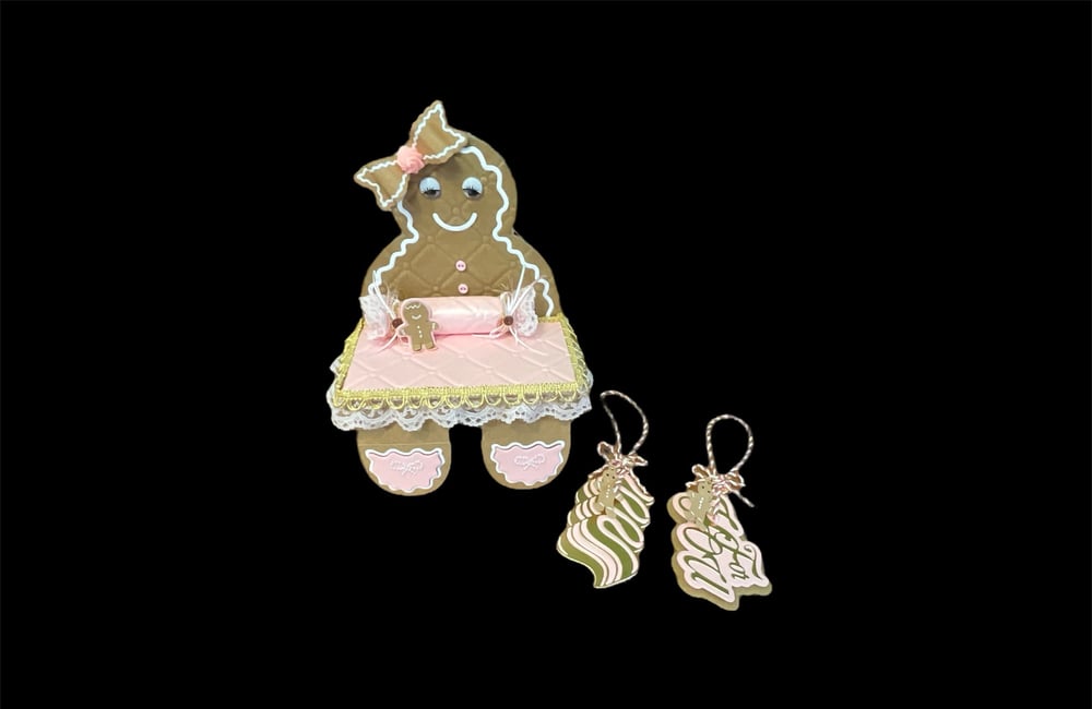 You can make this adorable gingerbread treat box into a "treat box" using the box/bag border set.